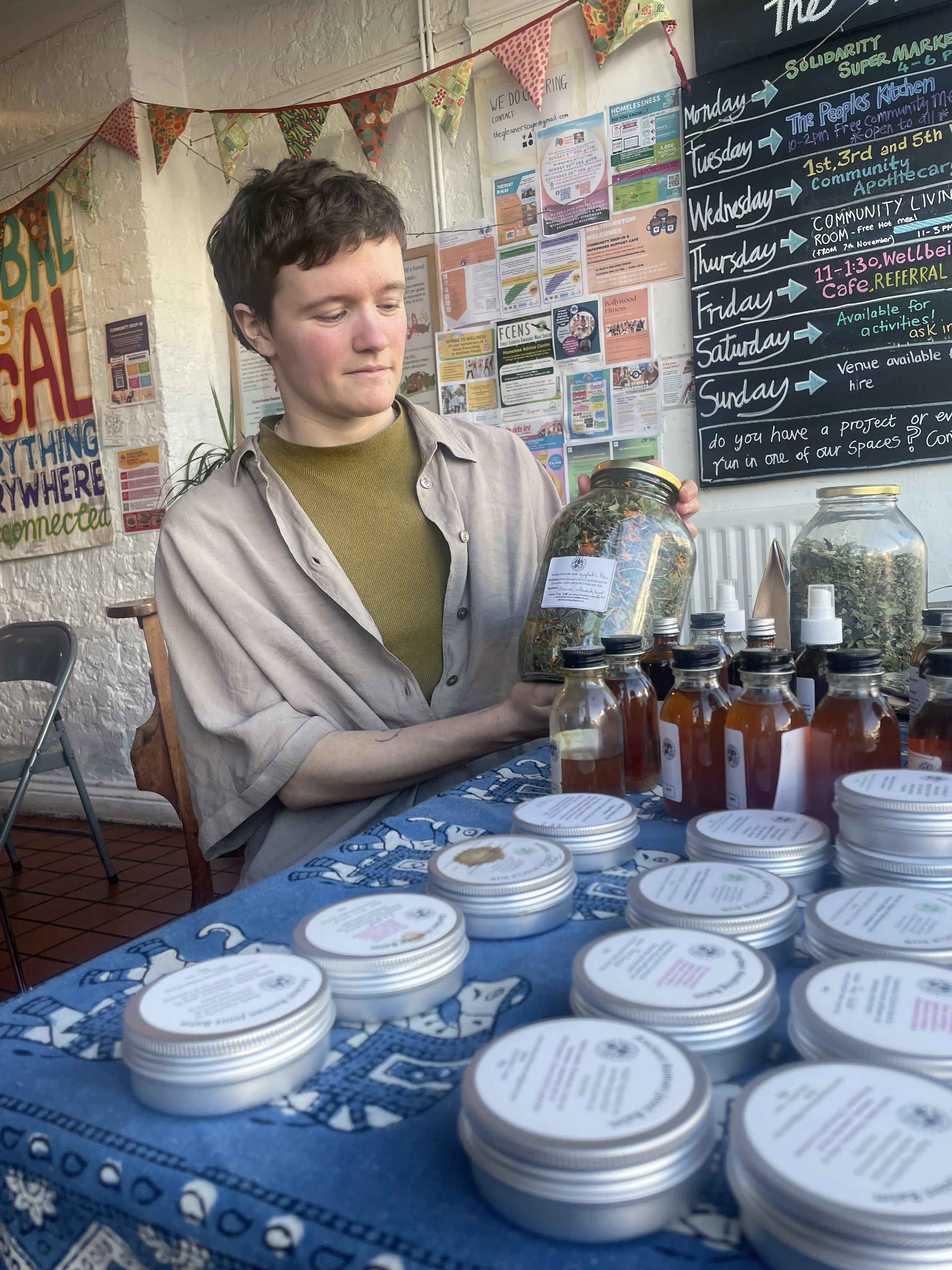 Odhran (they/them) joined the Community Apothecary as a medicine making facilitator in 2025 upon finishing their herbal medicine studies, after having been part of community herbalism projects since 2021. Their practice involves the practical application of herbalism within local communities, how herbalism supports body and medical agency, researching herbal trans health, and the curiosity of seeing the herbs from non-human perspectives. Coming from an urban upbringing, Odhran is interested in the ways we can connect with nature in the city, and how this can contribute to re-enchanting our daily lives by involving all the senses, and by playing with the stories we have created with surrounding environments.